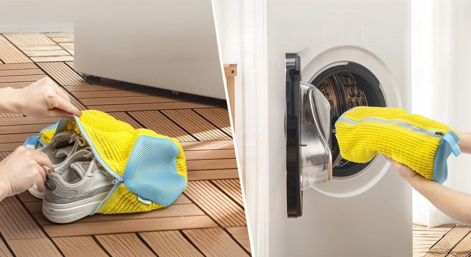 I was looking for a shoe washing bag like this for a long time. The soft microfiber inside really helped clean some old stains on my shoes. The bag keeps the shoes separated from my clothes, which is great. It also has a lot of space . I could fit even my big sneakers inside with no problem.Really great when you wash your shoes — I totally recommend it! Easy to use and works well!
